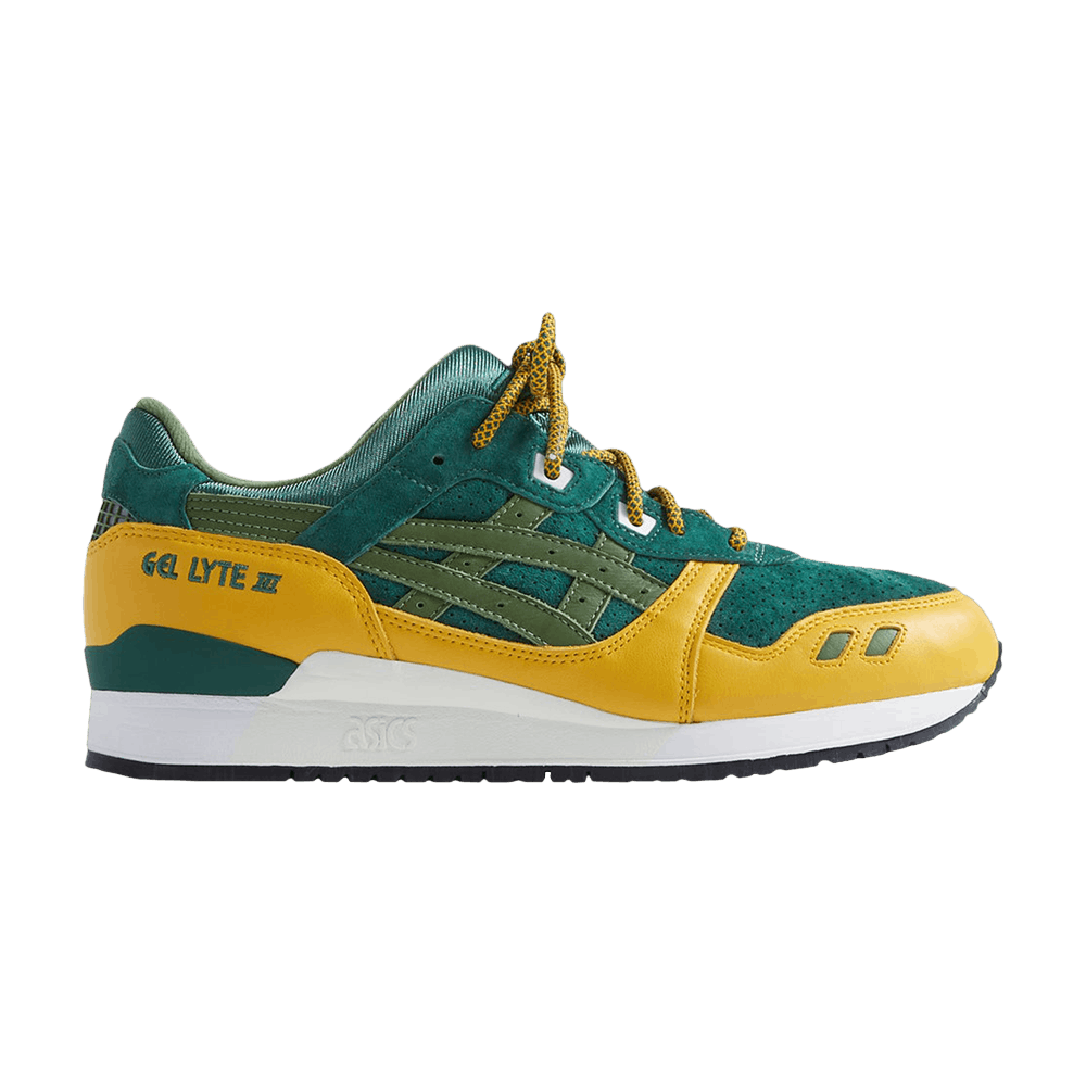 Dropping as part of a seven-piece collection celebrating the 60th anniversary of Marvel Comics’ X-Men franchise, the Kith x ASICS Gel Lyte 3 ‘Rogue’ honors the mutant superhero with the power to absorb a person’s life force through physical contact. The character’s original suit is mirrored in the design of the upper, featuring a dark green suede base with contrasting yellow leather overlays and olive leather side stripes. ‘Fieg’ and ‘X-Men’ are embroidered on the split tongue of each shoe, while custom ‘Rogue’ labels decorate the sockliners. The retro runner rides on an EVA midsole, fitted with Gel cushioning in the heel and supported underfoot by a black rubber outsole.